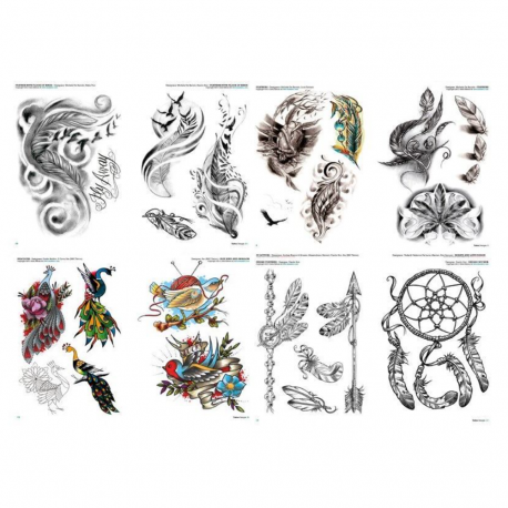Publikace Piume & Uccelli přináší kolekci návrhů zaměřených na pírka, ptáky a dekorativní prvky inspirované přírodou. Využijete ji jako praktický zdroj inspirace pro tatéry i klienty při výběru předloh i během konzultace ve studiu. Obsahuje stovky ilustrací od různých umělců a nabízí rozmanité zpracování od jemnějších kreseb až po výraznější kompozice v černobílém i barevném provedení. Pírka patří mezi oblíbené symboly a často se spojují se svobodou, lehkostí, duchovním růstem nebo vztahem k přírodě.