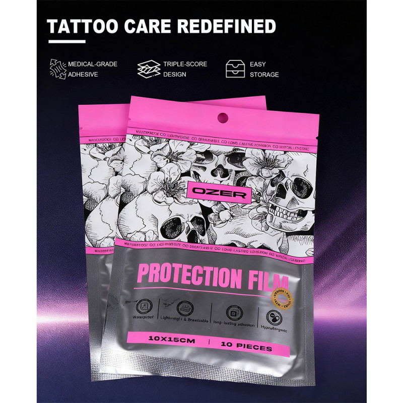 Profesionální péče o tetování začíná tou správnou ochranou. Ozer Protection Film je speciálně navržená ochranná fólie pro tetování, která kombinuje pohodlí, odolnost a kvalitu.