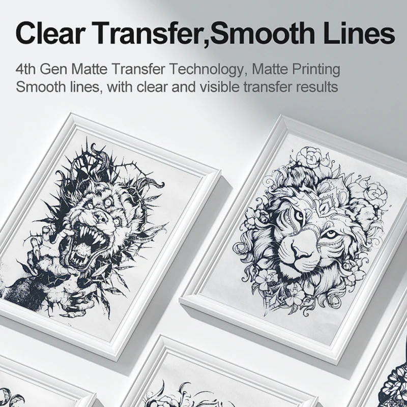 Hledáte přenosový papír pro přípravu šablon bez omezení délkou a bez zbytečného plýtvání? Tento produkt je určen pro tatéry pracující s termotiskárnami, kteří potřebují spolehlivý a dobře čitelný obtisk. Díky matnému termálnímu tisku vznikají čisté, plynulé linie s dobrou viditelností na kůži. Zvolíte si jen potřebnou délku. Papír se plynule odvíjí z role a zbytek zůstává uložený v boxu.