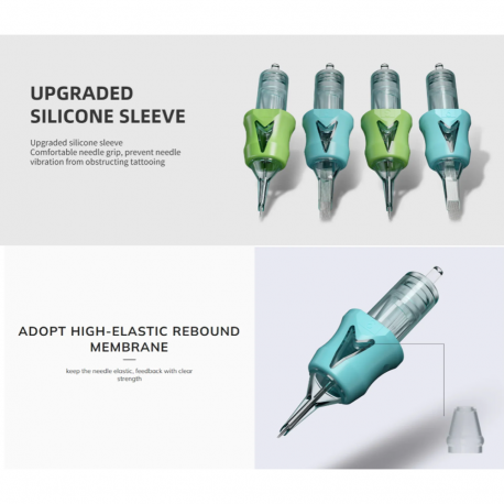 Řada OG Produce Arrow Round Magnum 5 je určená pro tatéry, kteří potřebují plynulé stínování s měkčím přechodem a lepší kontrolu u linií a okrajů. Úzká špička se šikmým zakončením pomáhá udržet směr tahu a podporuje rovnoměrný tok inkoustu, zatímco silikonový návlek tlumí nežádoucí vibrace. Dostupné cartridge umožňují vybrat variantu podle požadovaného krytí a stylu tetování.