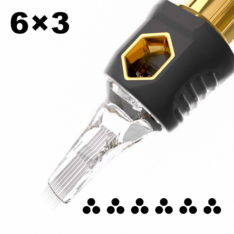 Luxusní černo-zlaté provedení a kvalitní jehly v těle cartridge dávají profesionálům nástroj pro dlouhá sezení bez zbytečných přestávek. Každý tah je plynulý a stabilní, takže se můžete plně soustředit na tvorbu, ne na vybavení.