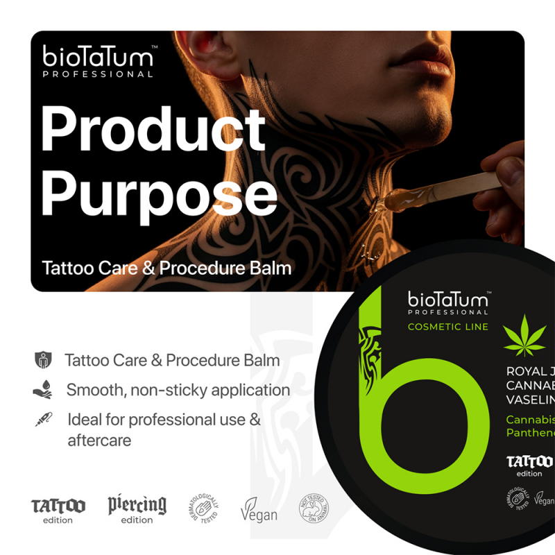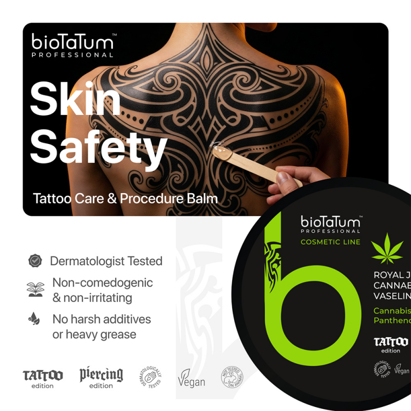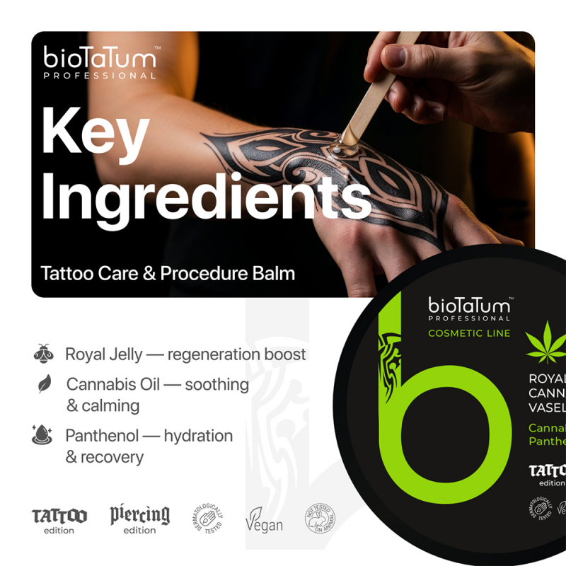 This gentle vaseline is designed to keep the tattooed area in the best possible condition throughout the procedure. A combination of shea butter, hemp seed oil and panthenol nourishes the skin, softens it and helps reduce discomfort. It is suitable for tattoo artists, PMU specialists and SMP professionals who want to work comfortably and without unnecessary irritation. The balm reduces friction, protects more sensitive areas and keeps the skin pleasantly hydrated.