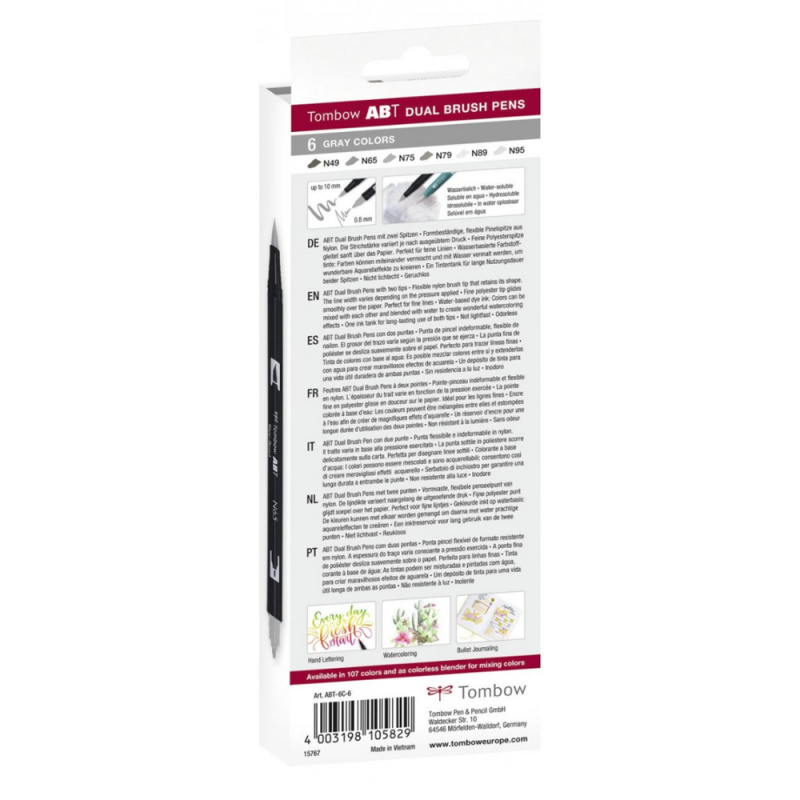 6x Tombow ABT Dual Brush Pen – Gray Colors: