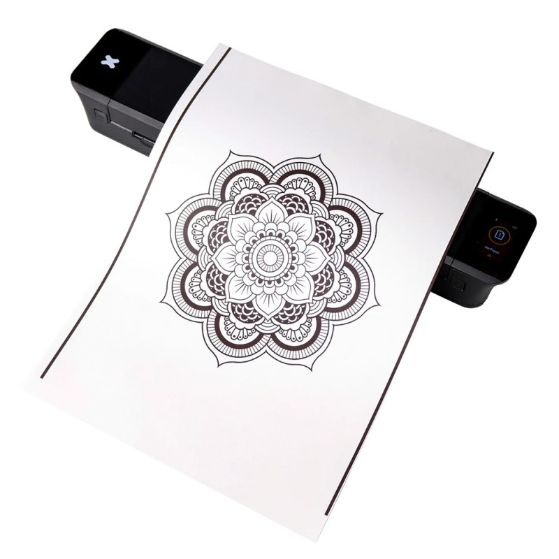 Looking for a way to have your design on paper for consultation and review? OZER Thermal Printing Paper is a thermal paper intended for tattoo artists and other artists, who value the professional presentation of their designs. Thanks to the premium surface finish, the result remains bold and detailed even for more complex documents with text and images. It allows you to quickly verify size, placement, and line readability; it is also suitable for showing the motif to a client or storing the printed materials as a reference in the studio. For printing only – this is not transfer paper and is not intended for creating stencils on the skin.