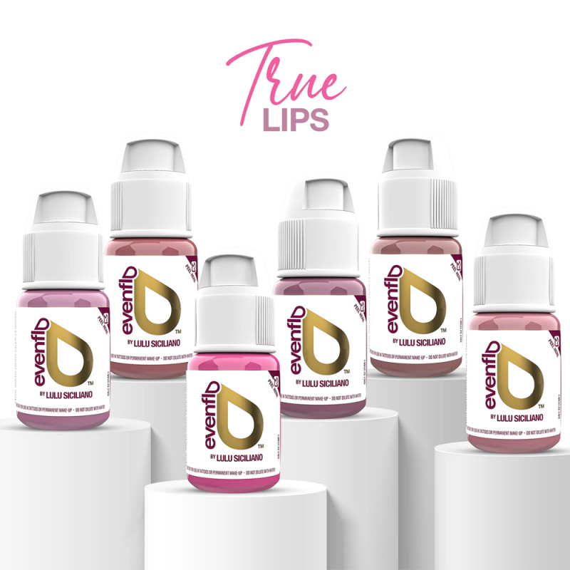 Romance je farba zo sady Evenflo True Lips, ktorú navrhla Lulu Siciliano, je vhodná taktiež na vyladenie tmavej a teplej hnedej farby pier. Jej prednosťou je, že bola vytvorená z vysoko kvalitných zložiek, vďaka ktorým dosiahnete optimálne výsledky po zahojení. Odtiene z tejto sady sú perfektnou voľbou pre techniky Lip Brush alebo Lipstick. Nájdete v nej 6 farebných variantov od tmavej, strednej a svetlej ružovej až po prirodzené fialkové odtiene.