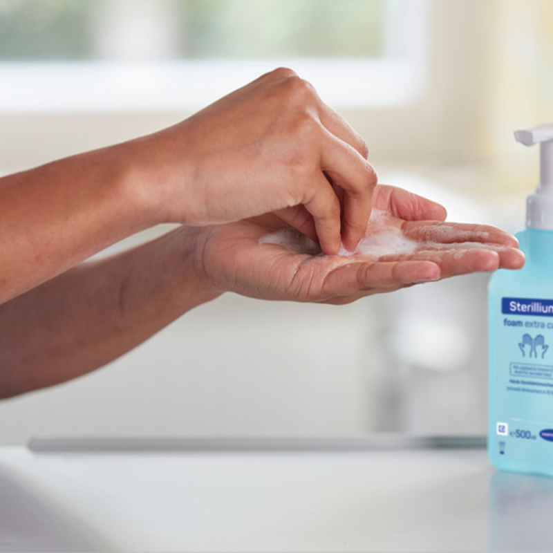 Sterillium® foam extra care je určený na hygienu rúk všade tam, kde sú čistota a bezpečnosť zásadné – v zdravotníctve, priemysle aj domácnostiach. Vysoko účinné zloženie na báze 85 % etanolu je vhodné aj pri opakovanej aplikácii počas dňa.
