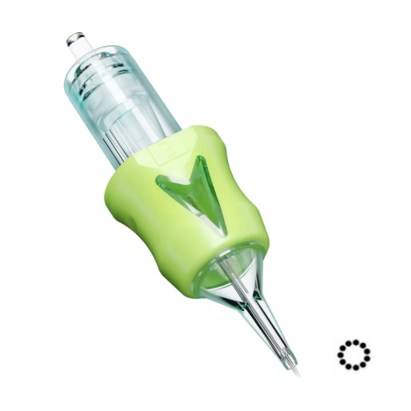 Rada OG Produce Arrow Shader 11 je určená pre tatérov, ktorí potrebujú kontrolu pri tieňovaní a pri vyplňovaní plôch. Úzka špička so šikmým zakončením pomáha udržať smer ťahu a podporuje rovnomerný tok atramentu, zatiaľ čo silikónový návlek tlmí nežiaduce vibrácie. Dostupné priemery umožňujú vybrať variantu podľa požadovaného krytia a štýlu tetovania.