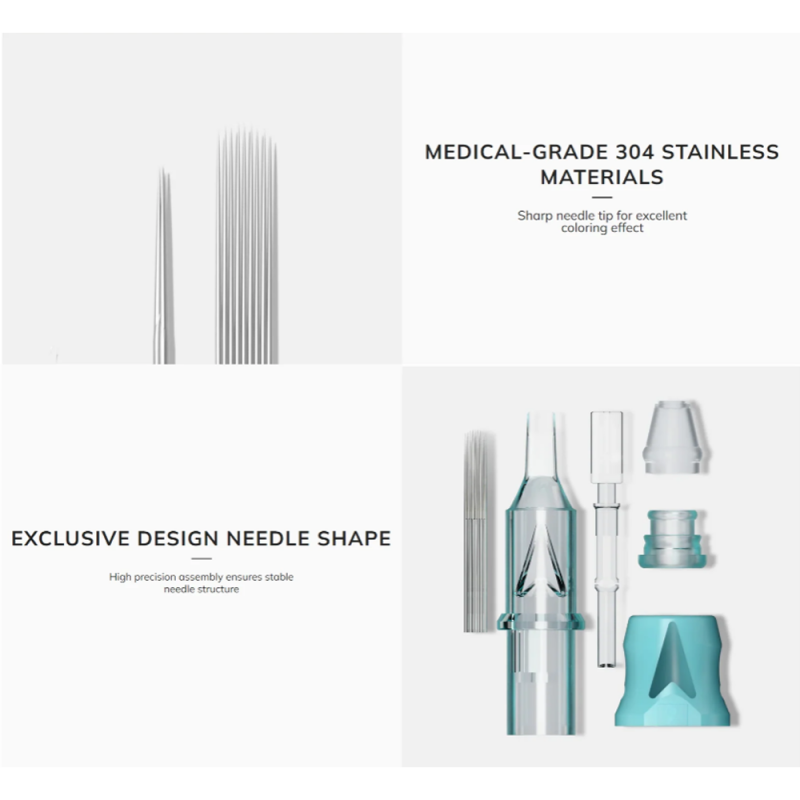 Rada OG Produce Arrow Round Magnum 19 je určená pre tatérov, ktorí potrebujú plynulé tieňovanie s mäkším prechodom a lepšiu kontrolu pri líniách a okrajoch. Úzka špička so šikmým zakončením pomáha udržať smer ťahu a podporuje rovnomerný tok atramentu, zatiaľ čo silikónový návlek tlmí nežiaduce vibrácie. Dostupné cartridge umožňujú vybrať variantu podľa požadovaného krytia a štýlu tetovania.