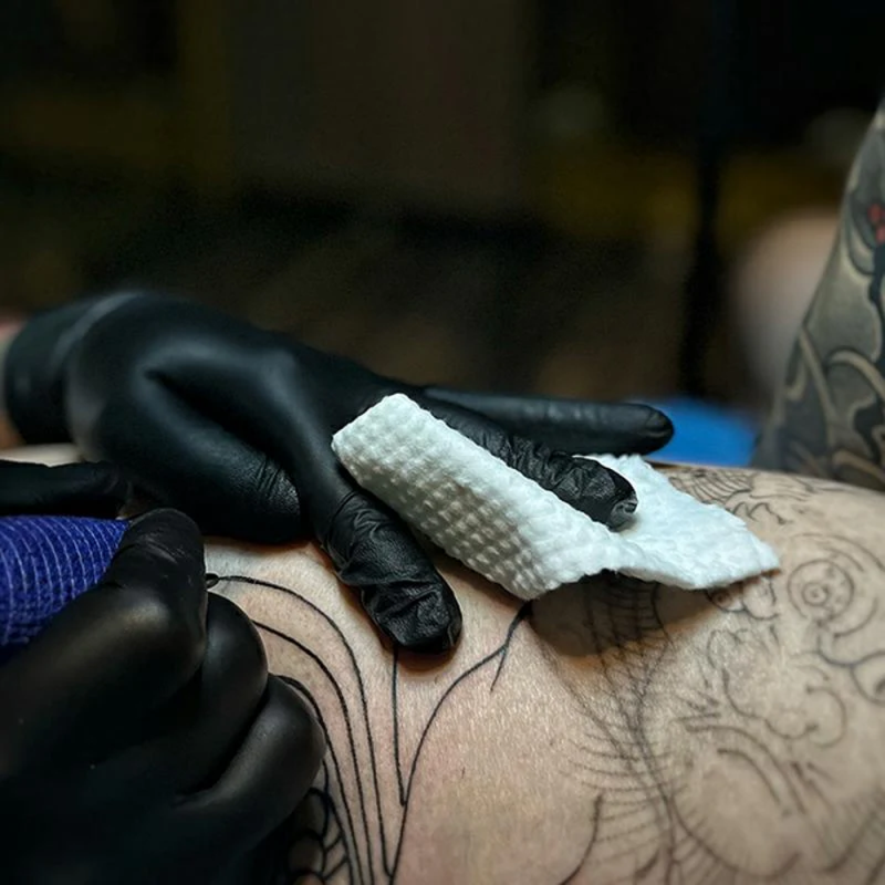 OG Produce Premium Cotton Tissue sú jednorazové utierky zo 100% bavlny, určené na prácu s pokožkou pri tetovaní, PMU, SMP, ale tiež na použitie v piercingových štúdiách a ďalších odborných úkonoch. Slúžia ako pevnejšia a savšia alternatíva ku klasickým papierovým utierkam. Používajú sa najmä na utieranie prebytočného atramentu, krvi a tekutín a na čistenie pleti. Zostávajú jemné pri kontakte s pokožkou a sú vhodné na každodenné použitie počas celej procedúry.